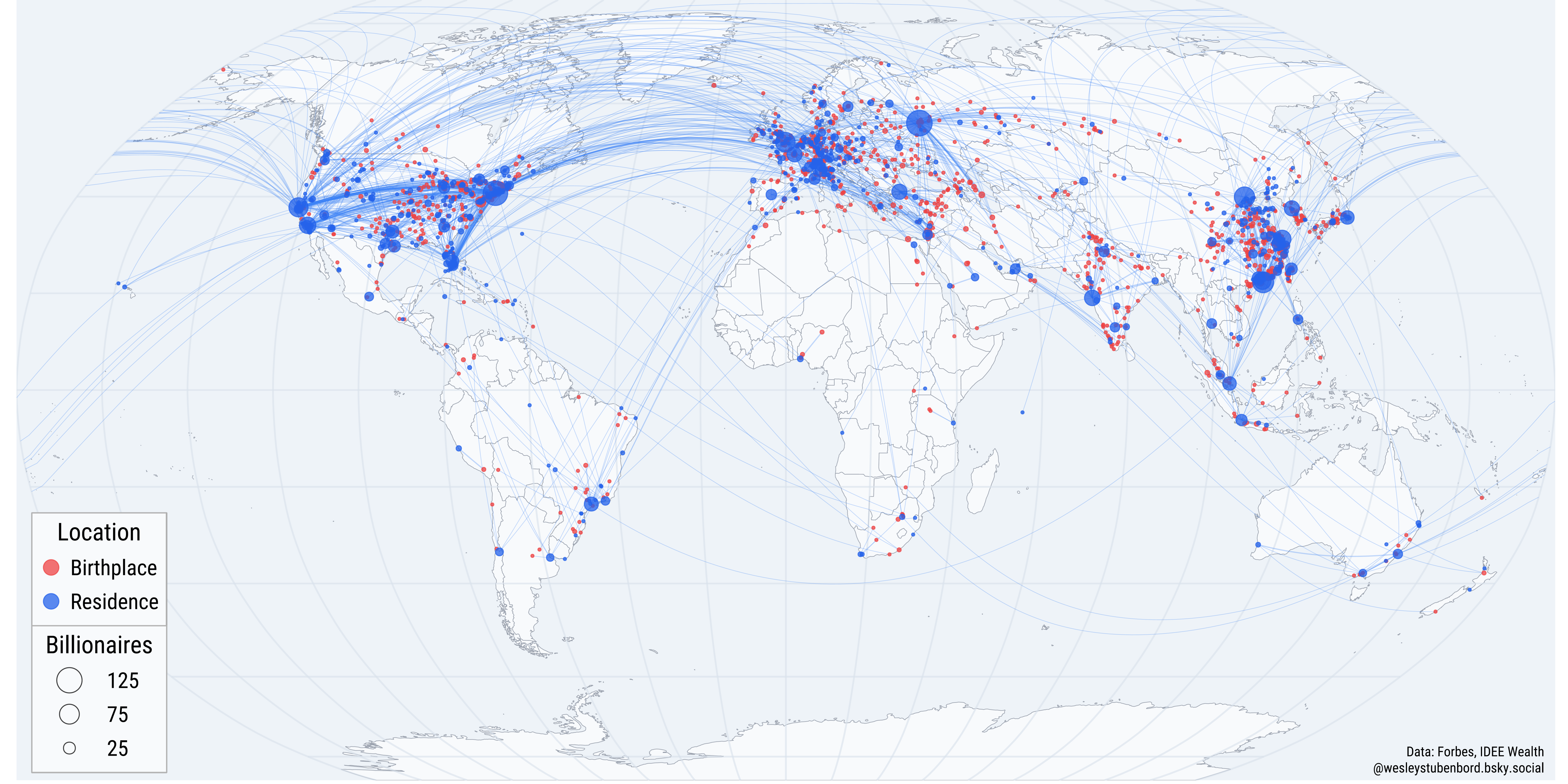 El mapa migratorio de los billonarios te muestra dónde ha nacido la gente más rica del mundo y dónde viven ahora [mirror]